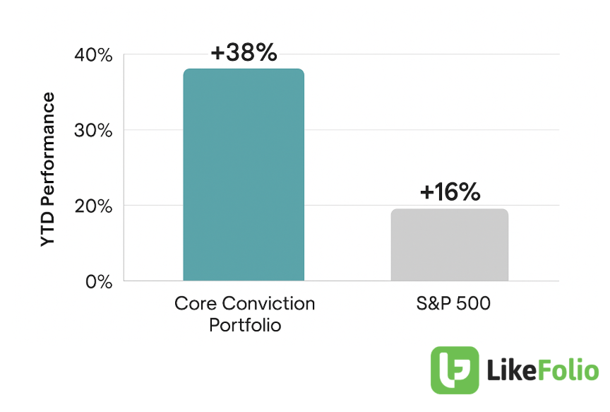 As of December 4, 2025, the Core Conviction Portfolio has realized an average Year-to-Date (YTD) gain of +38%, far exceeding the S&P 500 Index (SPX), which is up approximately +16% over the same period.