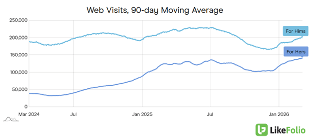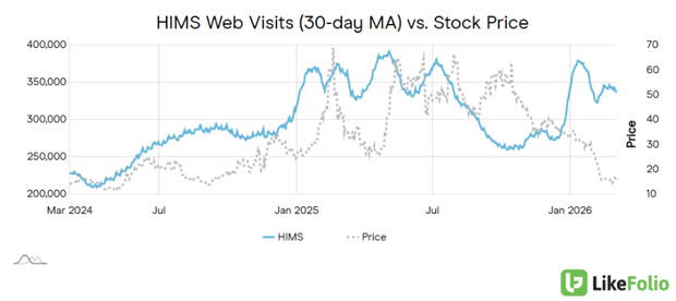 Our consumer data shows the momentum continuing. HIMS website visits are holding strong even as the stock plunged, signaling that consumer interest never cracked during the selloff: