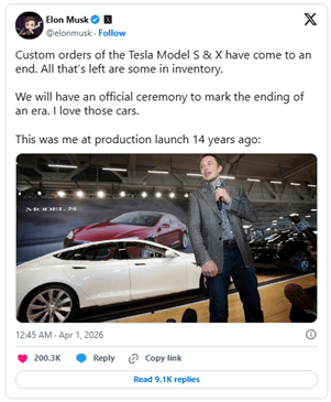 Model 3 and Model Y made up 341,893 of those deliveries. This is the mass-market engine. At the same time, Tesla is shutting down Model S and X production to free up capacity for something much bigger – Optimus robots.